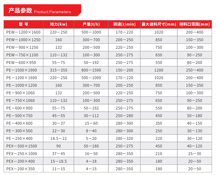 本系列產(chǎn)品適用于抗壓強(qiáng)度不大于320MPa的各類礦石、巖石和其他脆性物料的粗碎和中碎,廣泛應(yīng)用于公路、鐵路、礦山、冶金、建筑、水電等行業(yè)。其采用先進(jìn)的結(jié)構(gòu)設(shè)計(jì),調(diào)節(jié)方便、操作靈活,具備進(jìn)料大、破碎比大、產(chǎn)量高、運(yùn)轉(zhuǎn)可靠、能耗低等特點(diǎn)。